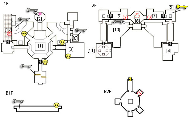 小さな鍵を入手したら[9]まで戻って使用する。奥の小部屋と廊下を抜けてもう一つ使用する。