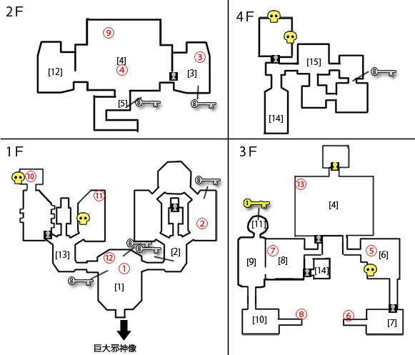 [11]でボス部屋のカギを入手。大広間に戻る。